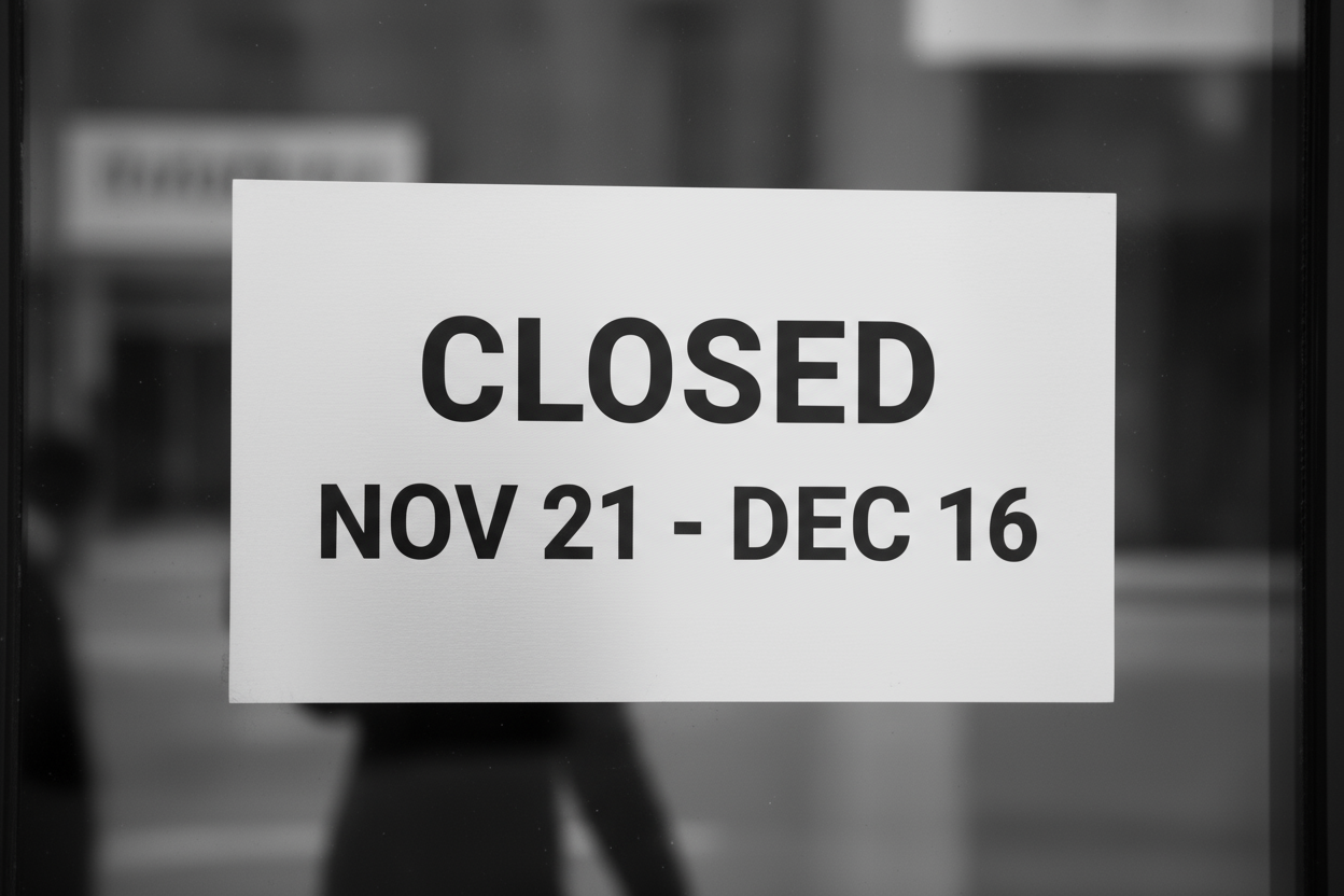 ORDERS PLACED DURING THAT TIME WILL BE PROCESSED ON DEC 16