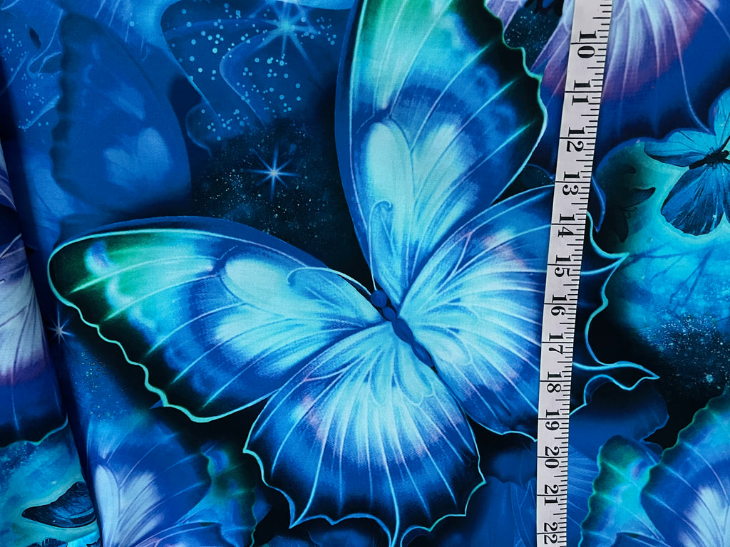 COTTON - Timeless Treasures - Cosmic Butterfly - Midnight Sparkling Butterflies 23” panel